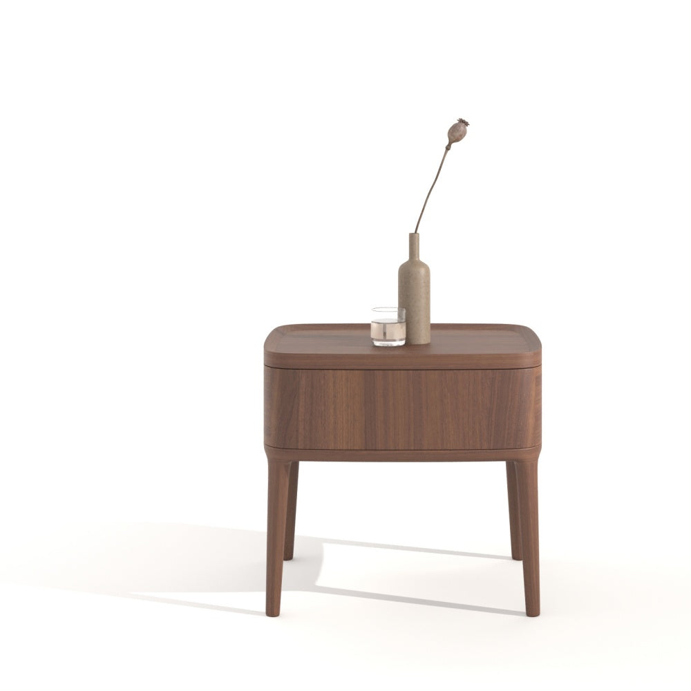 Carved from North American black walnut, the CLEARNESS Night Stand expresses the quiet tension between softness and structure. Its form appears effortless, yet every contour is considered — like a breath held gently within wood.