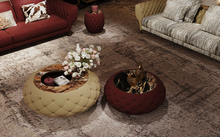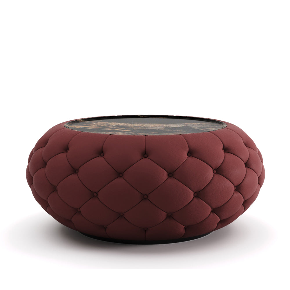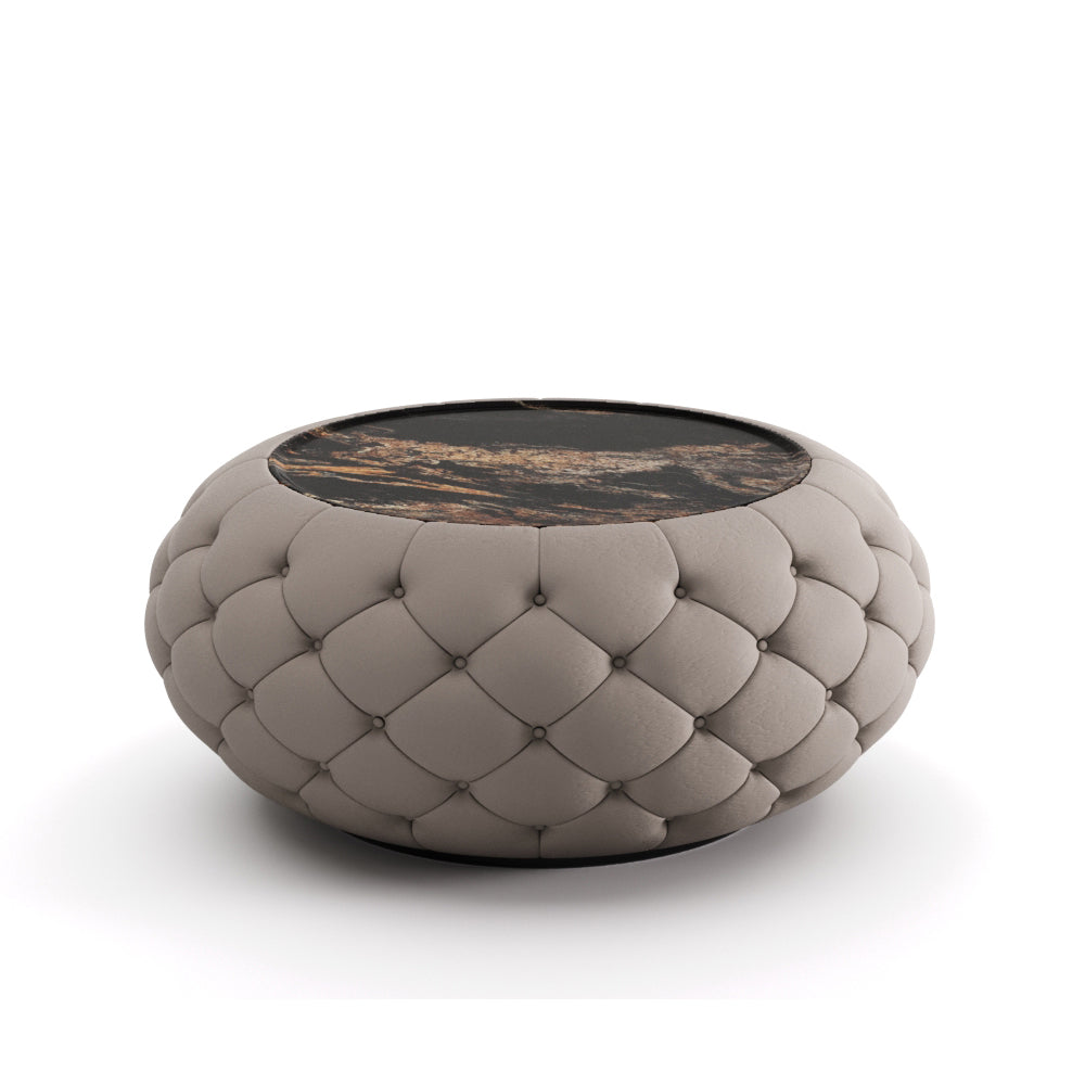 Wrapped in a tactile, quilted surface, the table invites both sight and touch, creating a sense of intimacy within a grand spatial narrative. The central plane appears to float, like a moment of pause suspended between motion and outcome. This is a piece conceived not to dominate a room, but to anchor it—offering presence through proportion, and emotion through restraint.