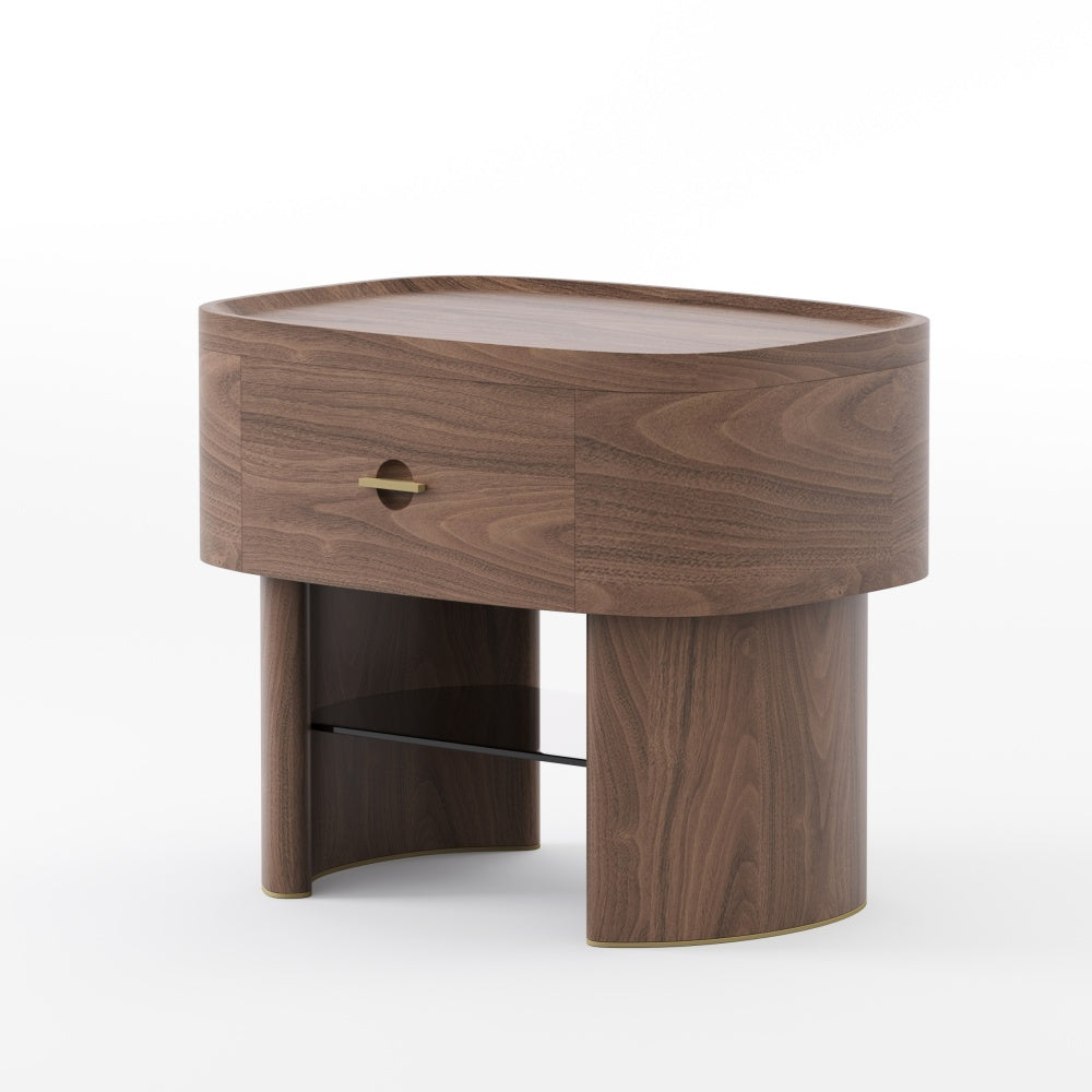 HE LE Bedside Table | Sculpted Walnut Night Companion