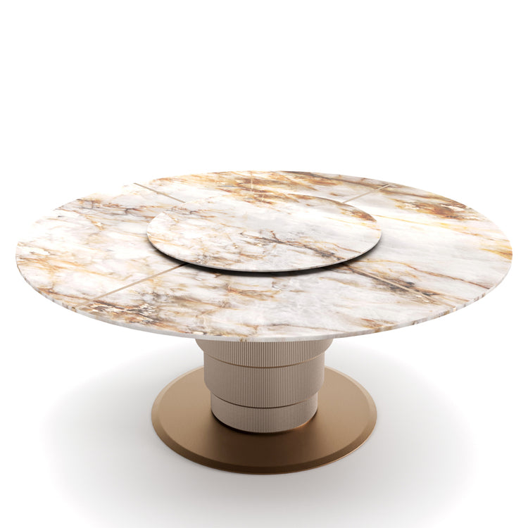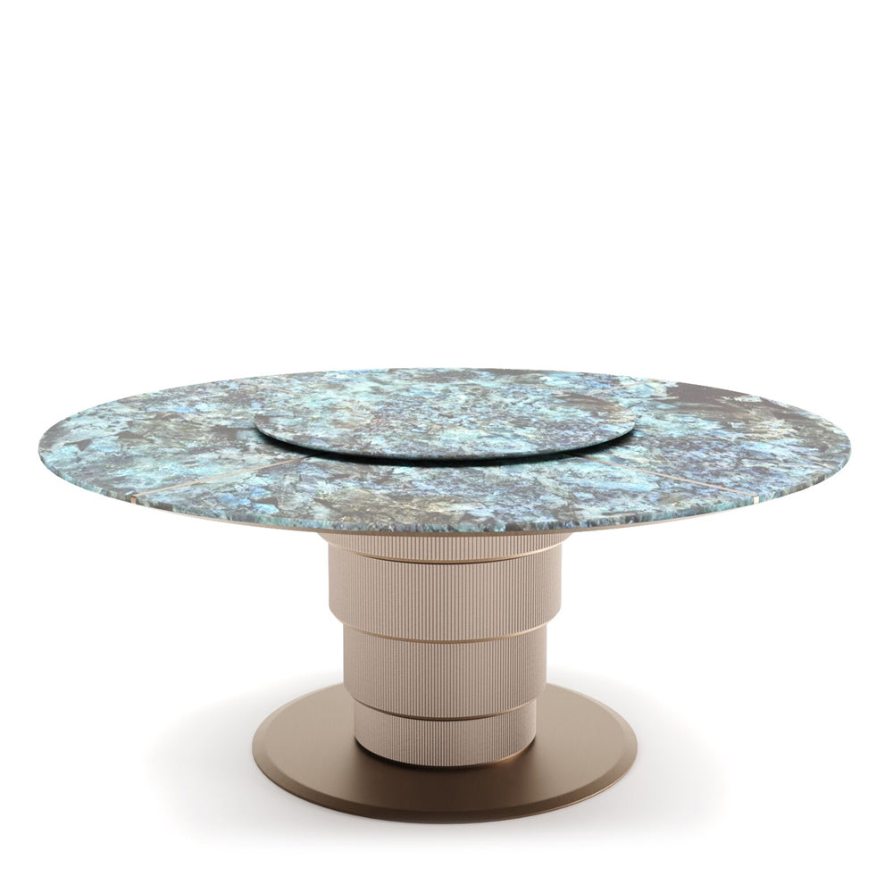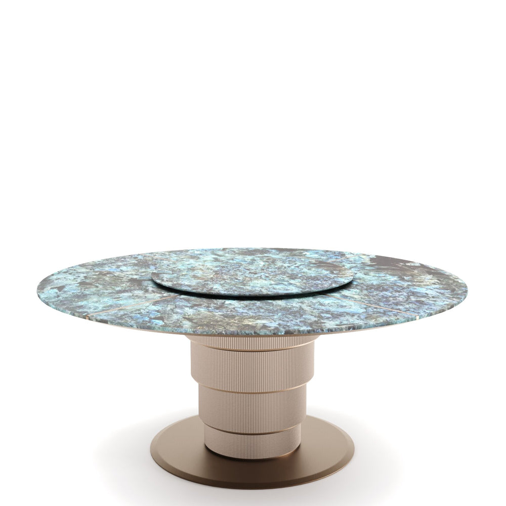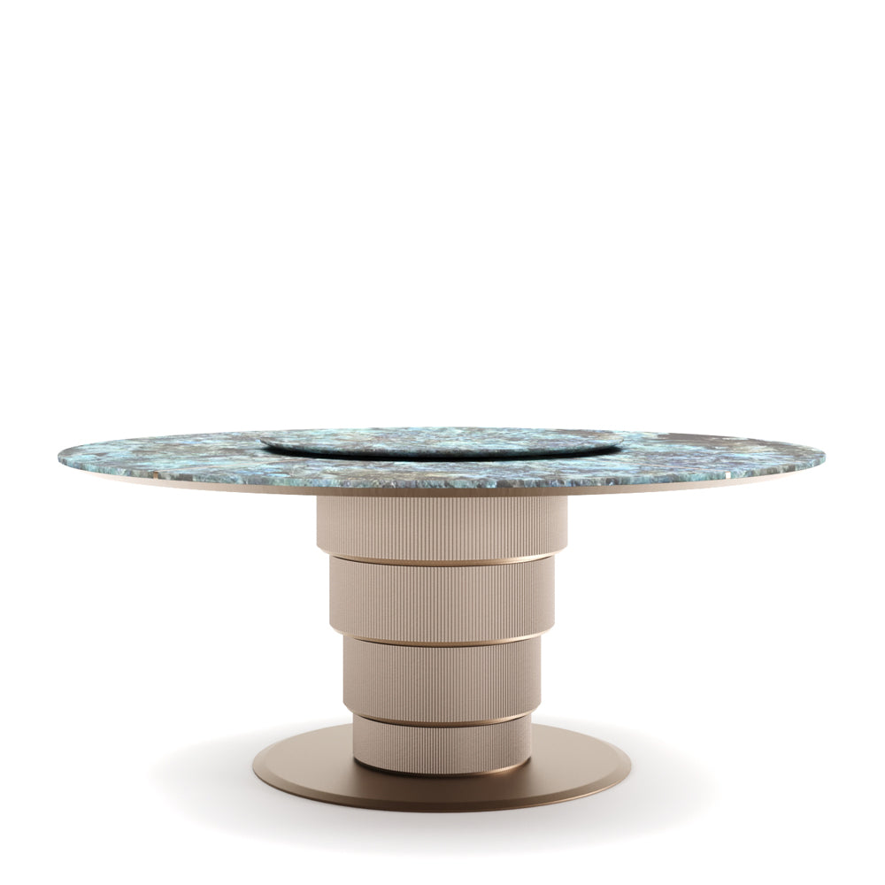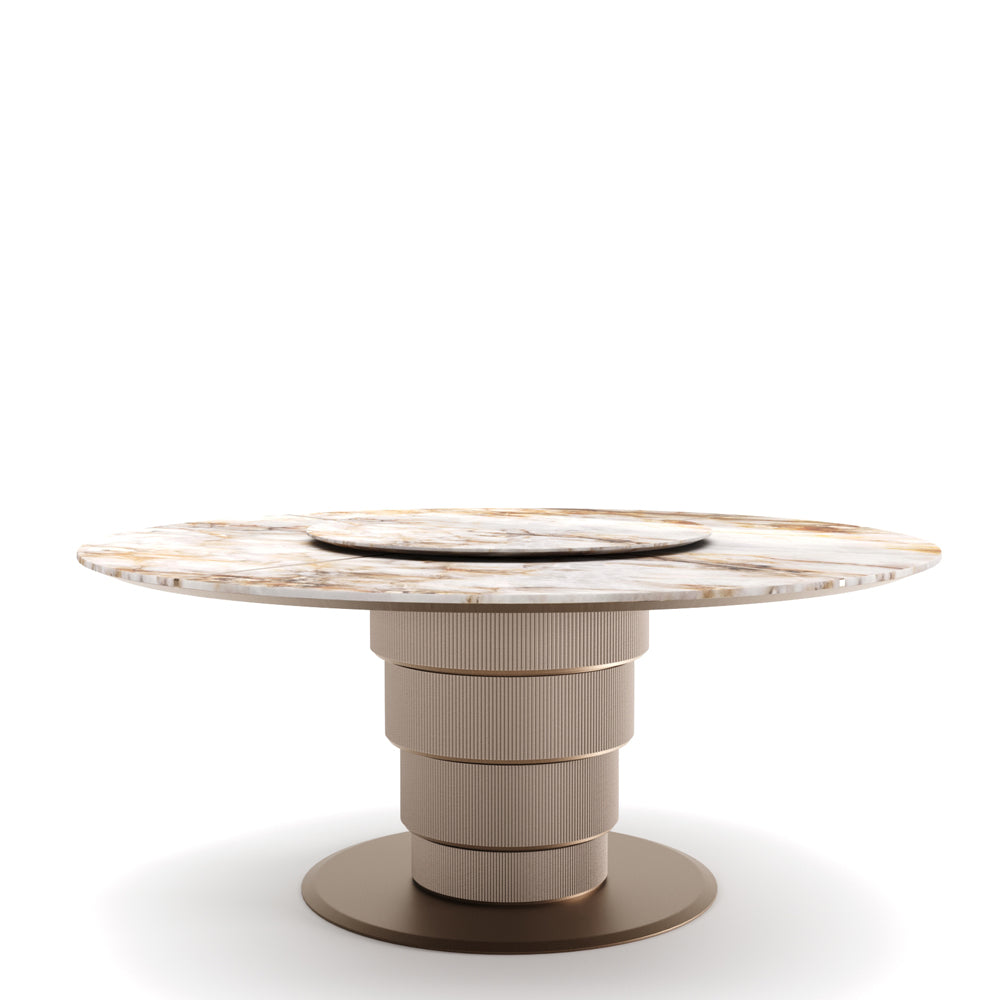 The layered tabletop unfolds like a composed gesture, deliberate yet effortless, resting upon a sculptural base that conveys permanence without heaviness. Every contour is measured, every transition intentional, resulting in a form that feels both architectural and intimate. This is not merely a table, but a stage for shared moments—designed to age gracefully alongside the lives it hosts.
