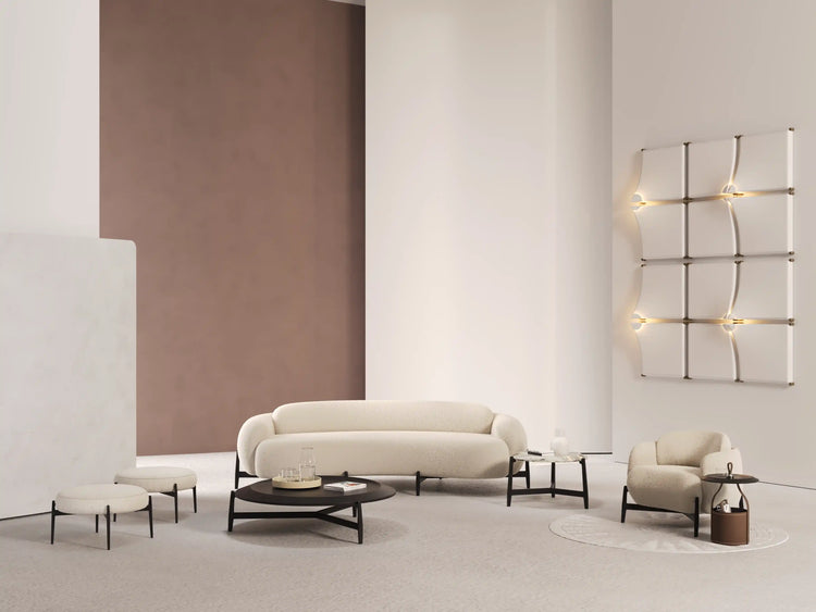 Pebble Collection Bespoke Sofa – Cashmere-Touch Upholstery, Sculpted Black Walnut Plinth