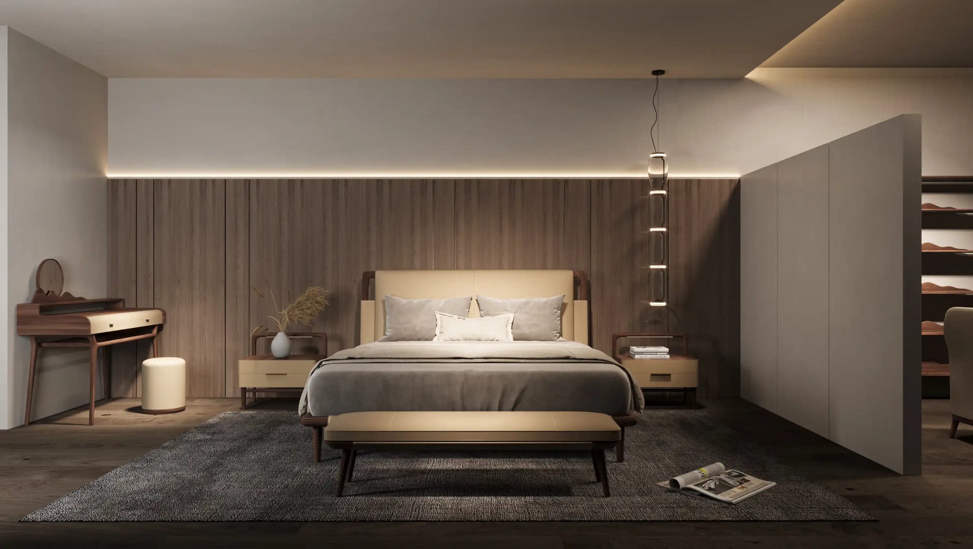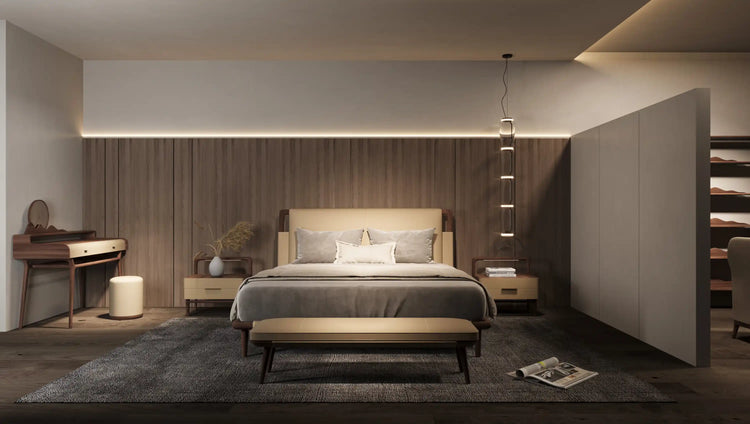 Every proportion is composed with intention. The bed’s gentle contours soften the geometry of space, allowing light, texture, and form to exist in serene harmony. This is not merely a place to rest, but a crafted landscape where evenings unfold with elegance and mornings begin in stillness.