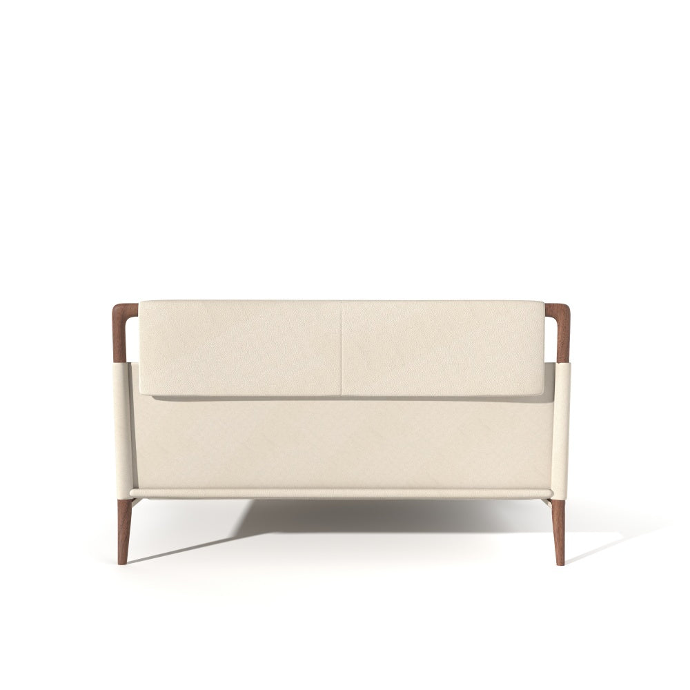 Crafted as a quiet statement of refinement, the Round Bed is where material poetry meets architectural calm. Supple genuine leather embraces the silhouette with understated softness, while North American black walnut lends its deep, natural strength like a whispered echo of the forest.