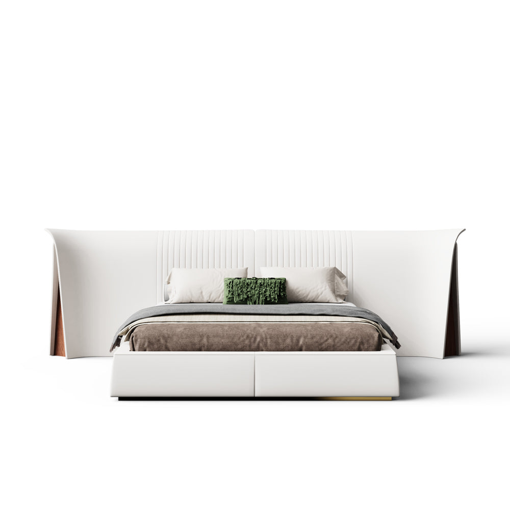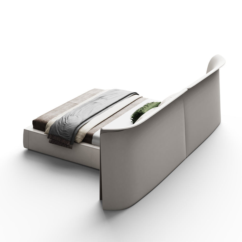 The SPIRIT AND TRANQUILITY Bed is conceived as a sanctuary rather than a statement. Its presence is calm yet assured, defined by generous proportions and a sculptural headboard that gently unfolds around the sleeper, creating a sense of protection and belonging. Soft architectural lines meet subtle curvature, offering a visual rhythm that feels both contemporary and timeless.