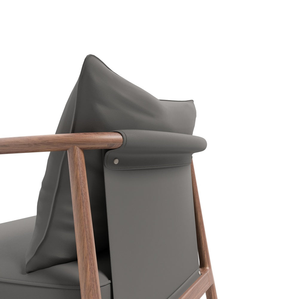 The CLEARNESS Collection Armchair transcends the boundaries of conventional design, seamlessly blending timeless elegance with modern sophistication. Crafted with the finest North American black walnut, its rich, dark grains enhance the refined silhouette, while the supple sample genuine leather seat promises unmatched comfort. A delicate balance of craftsmanship and luxury, this armchair is a masterpiece that elevates any living space, creating an atmosphere of tranquility and poise. Its gentle curves and immaculate lines embody the essence of understated grandeur, offering a sanctuary of peace and elegance.