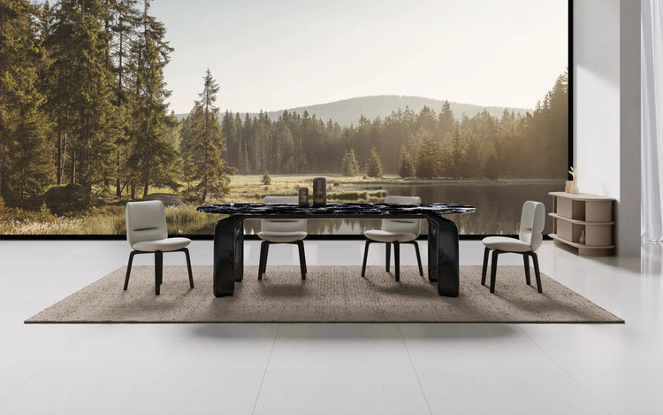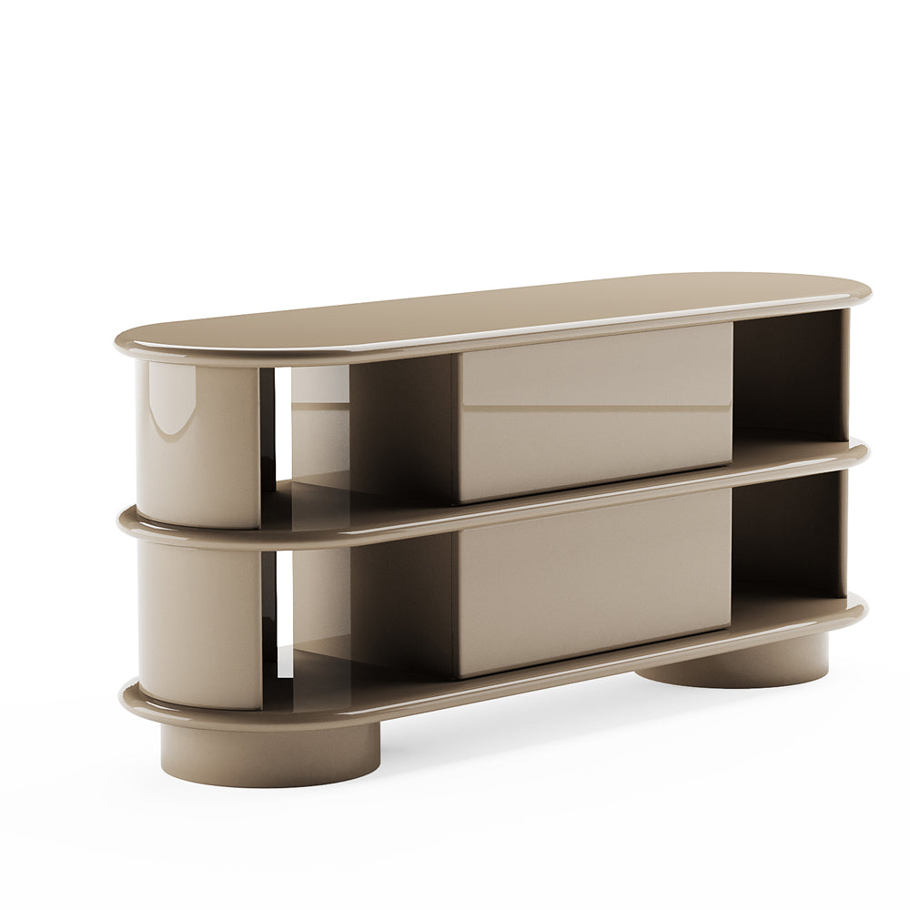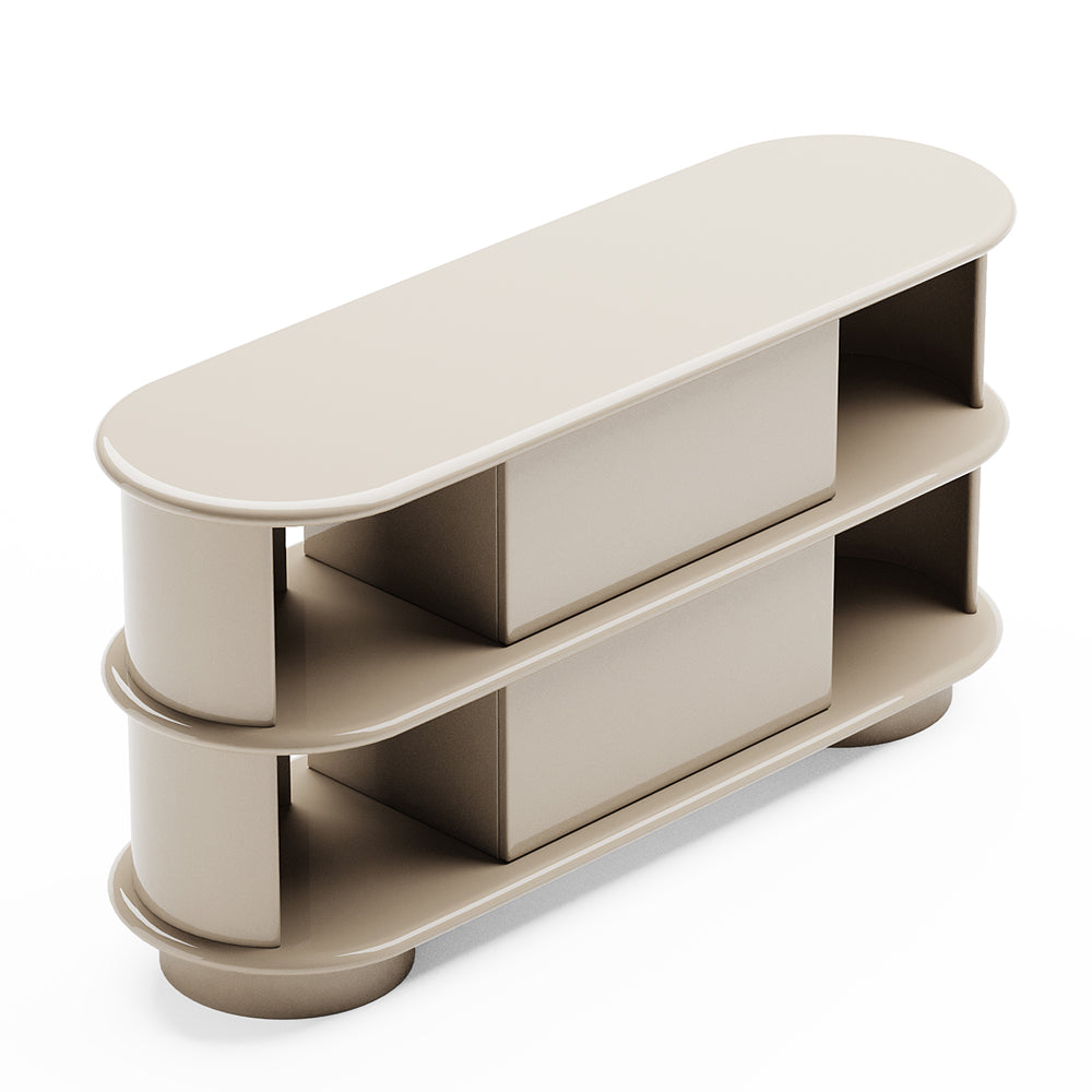 Rather than drawing attention through ornament, the design speaks through proportion and alignment. Soft volumes intersect with precise edges, creating a visual cadence that feels composed yet expressive. The surface invites touch, while the overall silhouette maintains a disciplined clarity, allowing the piece to integrate seamlessly into both residential and curated interior environments.